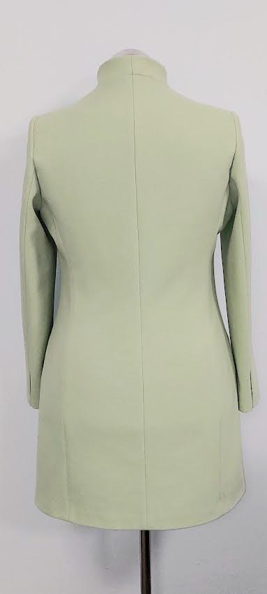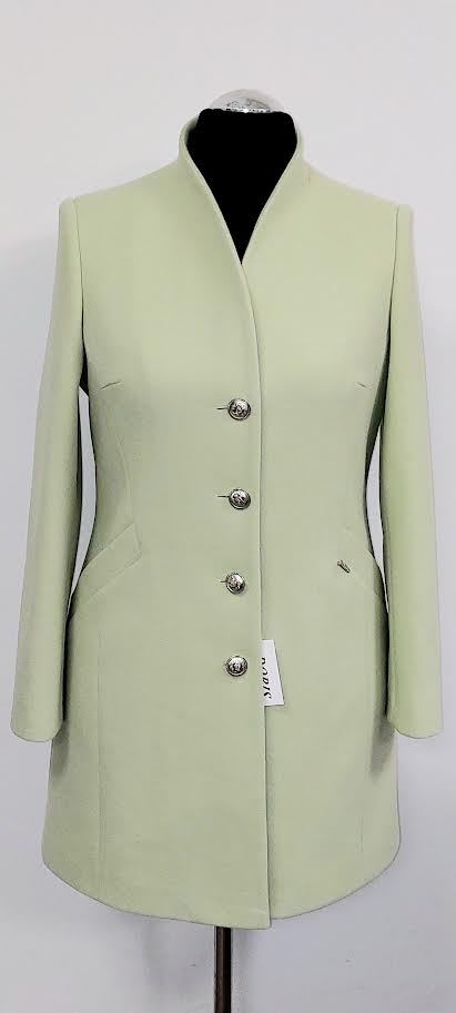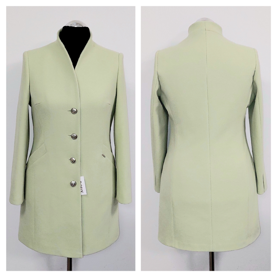 Płaszcz ze stójką w pięknym pistacjowym kolorze. Po bokach kieszenie z szerokimi wypustkami. Tył prosty,bez rozcięcia. Zapinany na guziki. Płaszcz jest wykończony podszewką .Standardowa rozmiarówka.